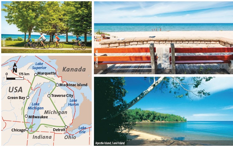 Auf der heutigen Etappe begrüßen Sie den Bundesstaat Michigan und das Südufer des Lake Superiors. Der See ist flächenmäßig größte Süßwassersee der Erde. Freuen Sie sich auf wilde Natur mit endlosen Laubwäldern und perfekter amerikanischer Kleinstadtidylle.